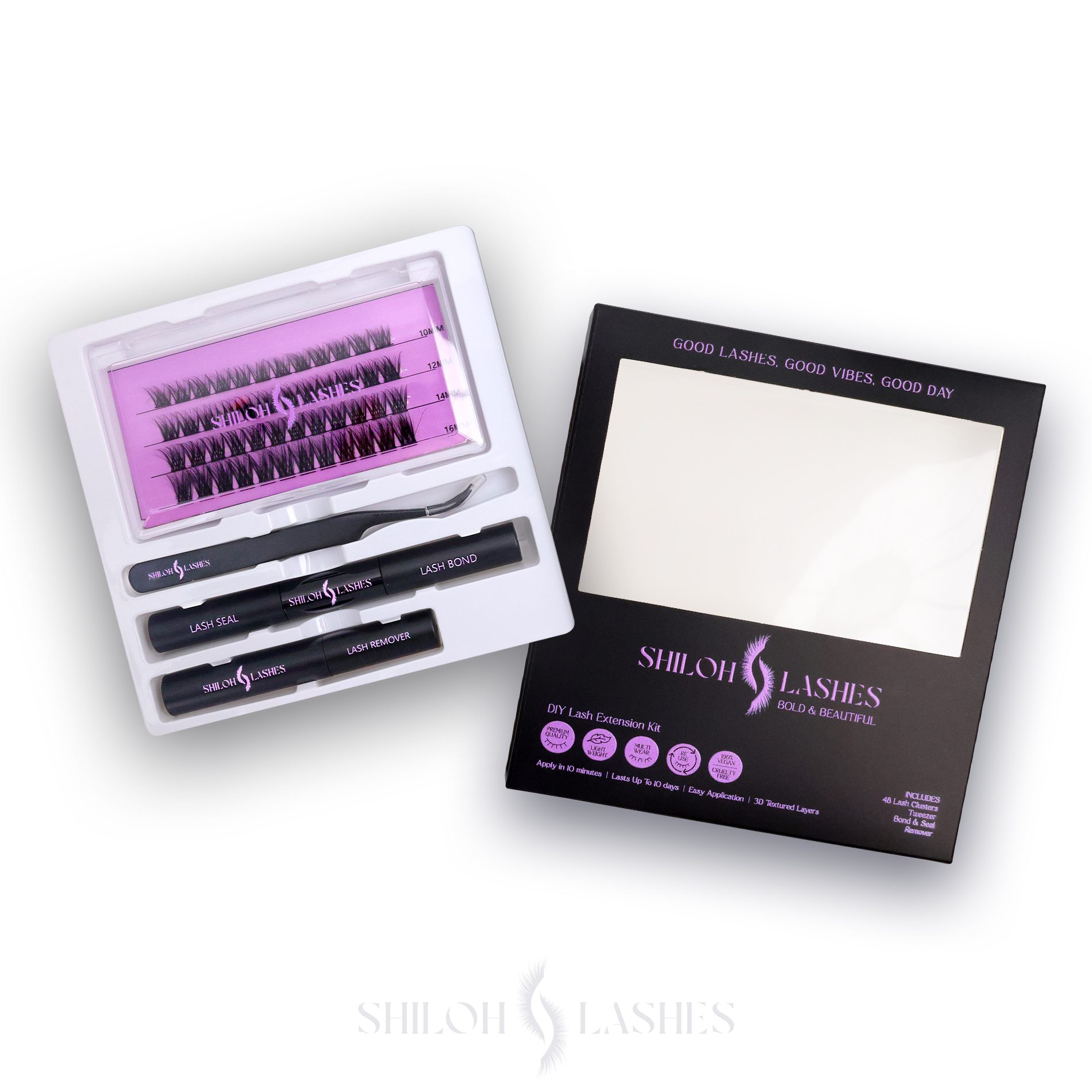 Includes 48 lashes (10–16mm), Bond & Seal (5ml), Remover, Tweezer